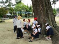 ひまわり、とうもろこし、きゅうり、朝顔…、運動場ではツバメが飛んでいます。