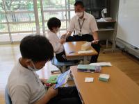 担任の先生と一緒に、外国語の授業をしていました。