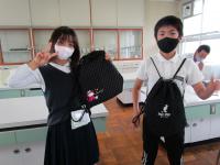 5校時、家庭科室を訪問すると、6年生がナップザックをつくっていました。