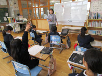 2校時、音楽室を訪問すると、5、6年生が音楽の授業をしていました。