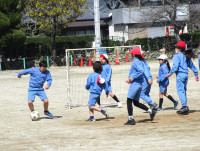 しかし、がんばってボールを追いかけ、蹴る足の面を意識したり、蹴る力を調節したりして、何度も挑戦する姿が見られました。